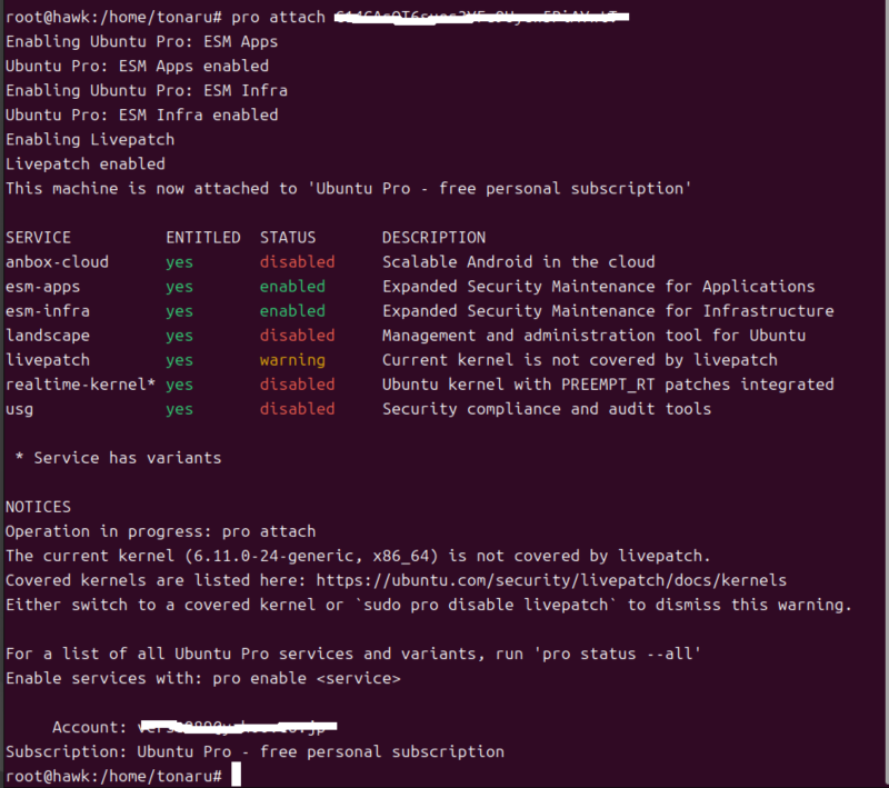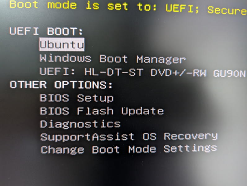 | 予備のPCとして使っている古いDellのWindows PCにLinuxを追加してWindows/LinuxデュアルブートPCにしてみました。 PCはDell Vostro3470(Intel Core i5-8400)でWindows11 24H2がインストール済です。LinuxはUbuntu 24.04 LTEを使用することにしました。 Windows11はSATAのSSDにインストールしてありますがSSDの容量が240GBと小さいため、手持ちのNVMe SSDをPCに増設してこれにUbuntuをインストールすることにしました。 ところが、PCのマザーボードをよく見てみると、M.2 SSDのスロットはSATA仕様となっていてNVMe SSDは使用できません。 ![]() このため、AmazonでNVMe対応のM.2 PCIeボードを購入(約1000円)してSSDを取り付けました。 ![]() UbuntuはここからUbuntu 24.04 LTSのisoファイルをダウンロードします。 ダウンロードしたisoファイルは6GB程度あるので通常のDVD-Rメディアにはコピーできません。通常のDVD-Rの2倍の容量がある二層式DVD(DVD-R DL)に焼きます。 ダウンロードしたディレクトリィにあるisoファイルを右クリックし、「ディスクイメージの書き込み」を選択してDVDへの書き込み操作を行います。 次に、PCからWindows11がインストールされているSSDを取り外し、UbuntuをインストールするSSDを取り付けます。 DVD-RをDVDトレイにセットして電源を入れるとPCがDVDから立ち上がります。 ![]() 「Try or Install Ubuntu」を選択するとインストールが始まります。 画面の指示にしたがってインストールを進めていきます。インストールが完了するまで2時間余りかかりました。 DVDトレイからDVD-Rを取り出してPCの電源を入れるとUbuntuが起動します。 なお、Ubuntuをマルチディスプレイで利用する場合、ディスプレイ2をプライマリィディスプレイに設定しておいてもログイン画面はディスプレイ1に表示されるため以下の対策が必要です。 /home ディレクトリィ配下にあるmonitors.xml ファイルを/var ディレクトリィ配下にコピーする。 #cp ~/.config/monitors.xml /var/lib/gdm3/.config/monitors.xml PCを再起動すればログイン画面がディスプレイ2に表示されるようになります。 (追記)2025/4 Ubuntu LTSはサポート期間が2年ですが、Ubuntu Proを購入するとこれが10年になるようです。 以下のとおり購入手続きをしてみました。 まず、Ubuntu oneのサイトでアカウント登録をします。 次に、Ubuntu Proのサイトに登録したアカウントでログインして、Ubuntu Proの購入手続きをします。個人利用の場合はPC5台まで無料です。 ![]() Ubuntu Proの購入手続きを終えるとTokenが表示されます。 ![]() UbuntuのターミナルからTokenを使って以下のコマンドを入力します。 #pro attach [Token] ![]() これでUbuntu Proの適用が完了しました。 次にUbuntu Proの管理ツールをインストールしておきます。 #apt install ubuntu-advantage-tools Ubuntu Proのバージョンや状態が確認できます。 ![]() Windows/LinuxデュアルブートPCにするため取り外しておいたWindowsがインストールされているSSDをPCに取り付けます。 PCを起動すると優先起動に設定されているOSが立ち上がります。 OSの切り替えはBIOSで行います。 PCの電源を入れてDellマークが画面に現れるまでにF12ボタンを連打します。 ![]() BIOS画面のUEFI BOOTでUbuntuとWindowsを切り替えて目的のOSで起動します。 優先起動するOSの設定はPC起動時にF2ボタンを連打して出てくるBIOS画面で行います。 ![]() 「Setting」 → 「Boot Sequence」 でUbuntu/Windows を上下の矢印ボタンで優先起動順序を切り替えます。Appry → Exit |