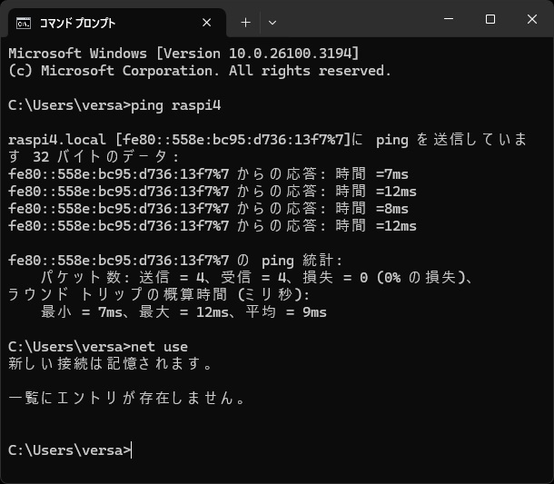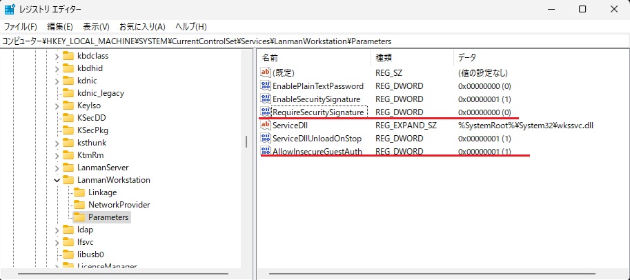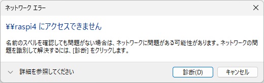 Windows11パソコンを新たに購入し、Raspberry Piで構築したSambaサーバーにアクセスしようとしましたがアクセスできません。Windows11 PCは他に2台あるのですがいづれも問題なくアクセスできています。 ![]() ![]() コマンドプロンプトで ping と net use を確認してみました。 ![]() ping は通りますが、net use コマンドでSambaサーバーが表示されません。 「Windows11 24H2でLinuxベースのNASにアクセスできない場合の解決策」などを参考にしていろいろ試してみました。 @ Windowsネットワークのリセットを行う ![]() 過去、Windows10の頃からWindowsのアップデートの後にSambaサーバーにアクセスできなくなる事象が時々発生しましたが、ネットワークのリセットで解決していました。しかし、今回はうまくいきませんでした。 A SMB1.0クライアントを有効にする ![]() SMB 1.0/CIFS クライアントにチェックが入っていなかったのでチェックを入れて有効にし、パソコンを再起動してSambaサーバーにアクセスしてみましたが結果NGでした。 B ローカルグループポリシーエディター gpedit.msc を起動してゲストログオンの有効化とデジタル署名の無効化を行う Windows11 HOMEでは gpwdit.msc が有効化されていないので、「Windows HOME でもローカルグループポリシーエディターを有効にして使えるようにする方法」を参考にこれを有効化します。 gpedit.msc を起動して「安全でないゲスト ログオン」を有効にします。 ![]() 「Microsoft ネットワーク クライアント: 常に通信にデジタル署名を行う」を無効にします。 ![]() パソコンを再起動してSambaサーバーにアクセスしてみましたがNGでした。 C レジストリィ エディター regedit を起動してゲストログオンの有効化とデジタル署名の無効化を行う regedit を起動して「RequireSecuritySignature と AllowInsecureGuestAuth」を設定します。 ![]() パソコンを再起動してSambaサーバーにアクセスしてみたらOKとなりました。 コマンドプロンプトで net use を確認してみました。 ![]() Sambaサーバーのエントリが存在しています。 |